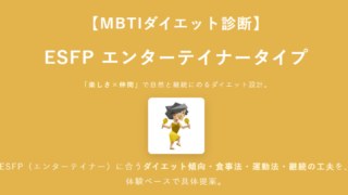 タイプ別ダイエット ESFP(エンターテイナー)に合うダイエット方法|MBTIダイエット診断結果 【MBTIダイエット診断】 ESFP エンターテイナータイプ 「楽しさ×仲間」で自然と継続にのるダイエット設計。 ESFP(エンターテイナー)に合うダイエット傾向・食事法・運動法・継続の工夫を、体験ベースで具体提案。 ESFP(エンターテイ... 2025.09.07 タイプ別ダイエット