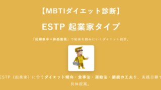 タイプ別ダイエット ESTJ(幹部)に合うダイエット方法|MBTIダイエット診断結果 【MBTIダイエット診断】 ESTJ 幹部タイプ 責任感・統率力・現実的判断。「ルール化×リーダーシップ」で着実に成果を出す、実行力抜群のダイエットタイプ。 ESTJ(幹部)の計画力・責任感・統率性を根拠にした食事法・運動法・継続の工夫を詳... 2025.09.02 タイプ別ダイエット