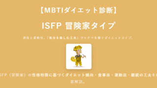 タイプ別ダイエット ISFP(冒険家)に合うダイエット方法|MBTIダイエット診断結果 【MBTIダイエット診断】 ISFP 冒険家タイプ 感性と柔軟性。「気分を楽しむ工夫」でモチベを繋ぐダイエットタイプ。 ISFP(冒険家)の性格特徴に基づくダイエット傾向・食事法・運動法・継続の工夫を徹底解説。 ISFP(冒険家)の性格とダ... 2025.09.06 タイプ別ダイエット
