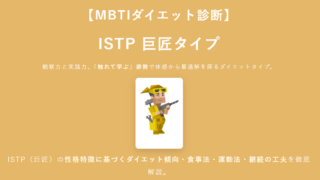 タイプ別ダイエット ISTP(巨匠)に合うダイエット方法|MBTIダイエット診断結果 【MBTIダイエット診断】 ISTP 巨匠タイプ 観察力と実践力。「触れて学ぶ」姿勢で体感から最適解を探るダイエットタイプ。 ISTP(巨匠)の性格特徴に基づくダイエット傾向・食事法・運動法・継続の工夫を徹底解説。 ISTP(巨匠)の性格と... 2025.09.04 タイプ別ダイエット